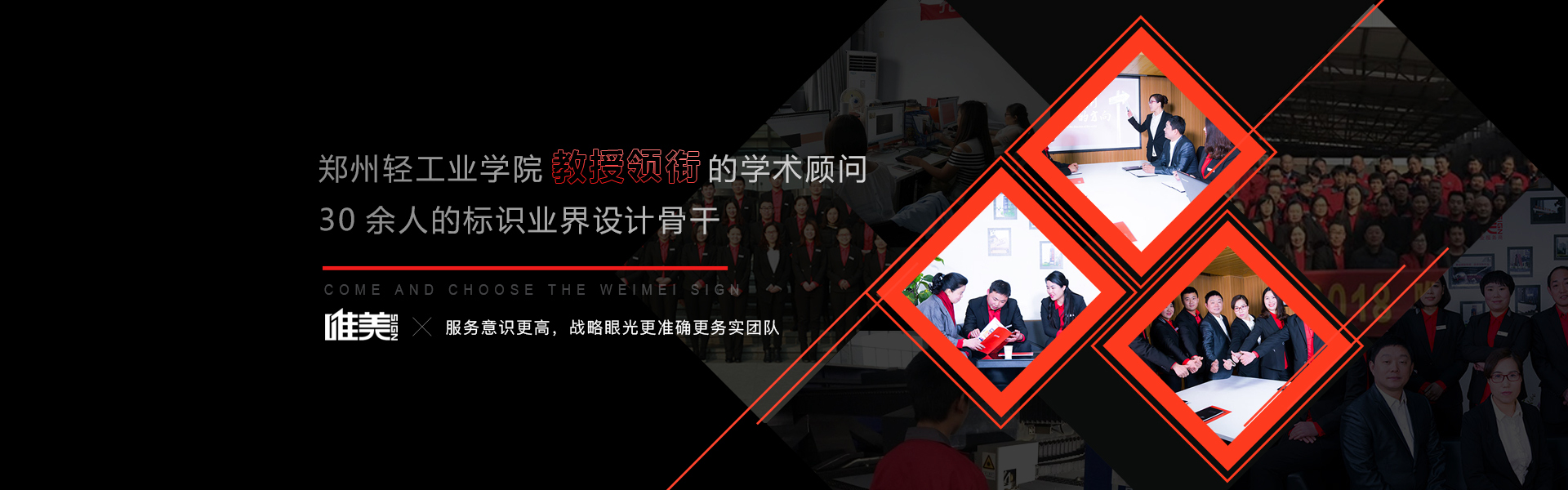 鄭州唯美標(biāo)識設(shè)計(jì)制作有限公司是一家集標(biāo)識系統(tǒng)開發(fā)、設(shè)計(jì)、制作、安裝、售后服務(wù)于一體的專業(yè)化標(biāo)識公司。 13年專注標(biāo)識行業(yè)定制服務(wù),已成為地產(chǎn)住宅、商業(yè)廣場 、商辦公務(wù)、醫(yī)院系統(tǒng)、學(xué)校文化、工業(yè)園區(qū)、旅游景區(qū)、酒店餐飲、銀行金融等多個領(lǐng)域的提供標(biāo)識系統(tǒng)解決方案公司。